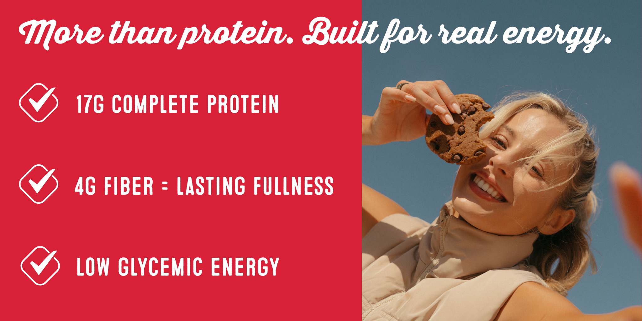 Real, whole-food ingredients. Soft, chewy, and seriously satisfying. It’s everything you love about a cookie — rebuilt with purpose.