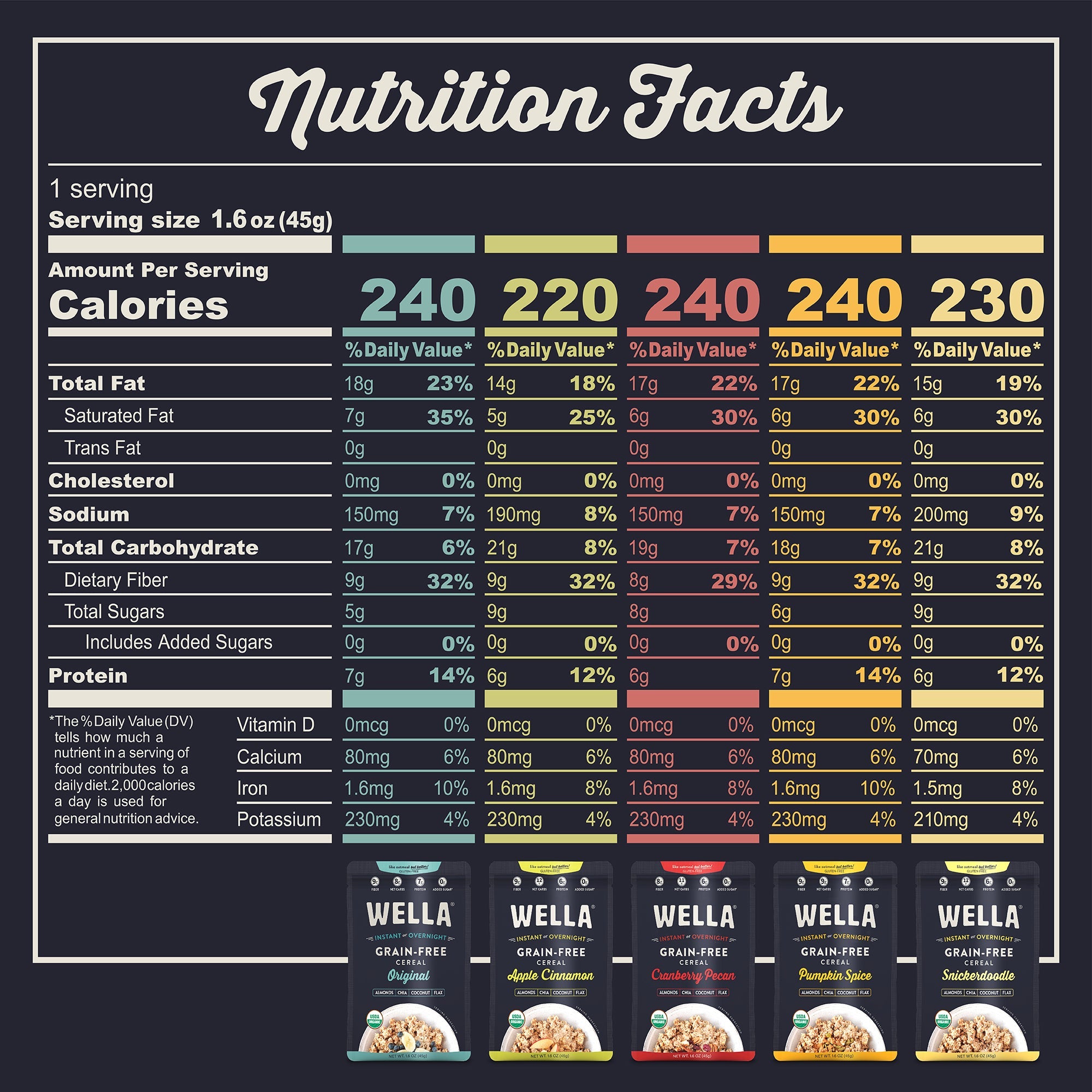 - 3x the Fiber of Oatmeal and About 2x the Protein. Love grain free hot cereal, vegan oatmeal or anything in between? Wella’s NEW grain free organic breakfast cereal is for you! Supercharge your morning with whole foods and delicious flavors – day or night! This grain free superfood can be enjoyed as an instant organic cereal and oatmeal-like staple designed to fuel your body. It’s like oatmeal, but better!