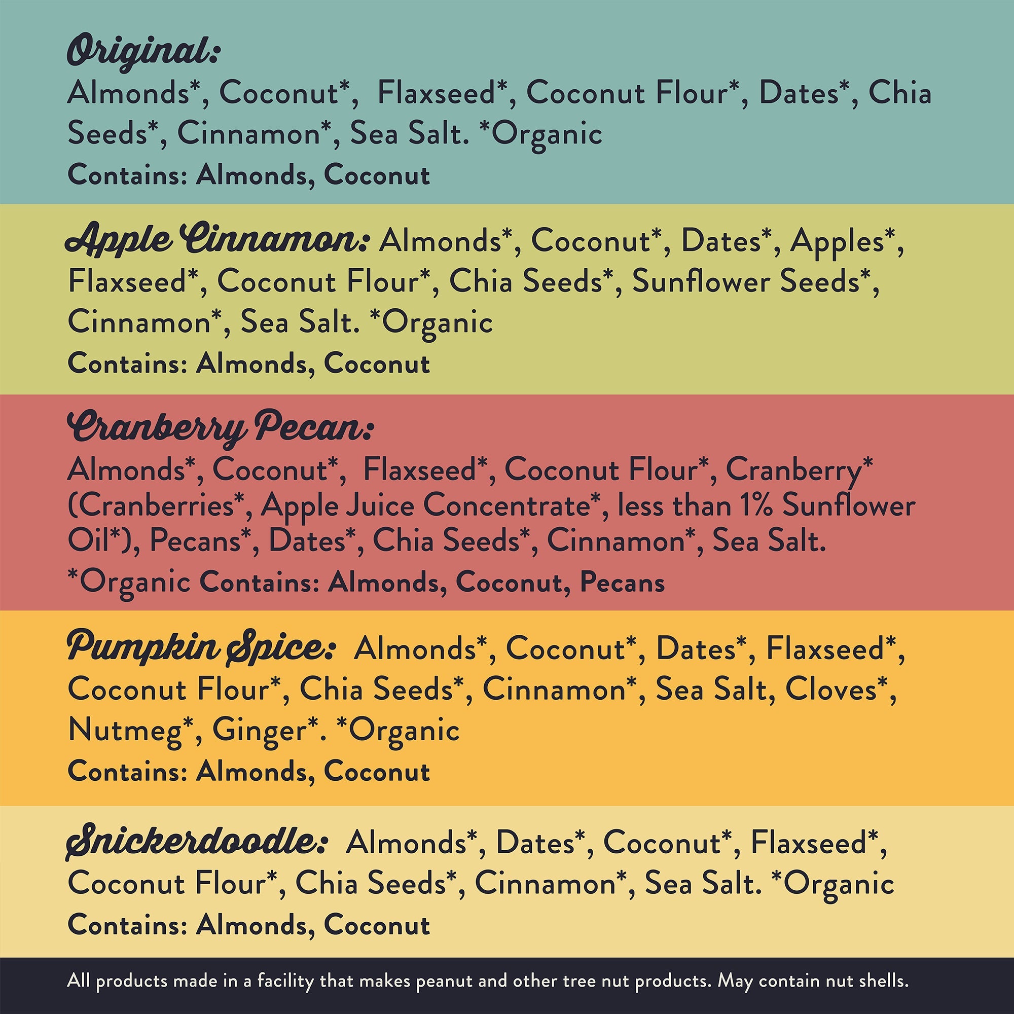 WHAT'S IN IT - Two single serve packets of each flavor - Original, Cranberry Pecan, Apple Cinnamon, Snickerdoodle and Pumpkin Spice.