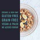 Yummy, Fast, Portable, Instant or Overnight. Incredible taste meets convenience. This gluten free, grain free cereal is packed with energy powered by protein, healthy fats and plant-based ingredients. Lightly sweetened with wholesome dates, Wella’s high protein organic cereal is crafted with 5 superfoods and no artificial or refined ingredients. - Grain Free, Gluten-Free, Paleo, Vegan, No Added Sugar. Using only organic and non-GMO ingredients, this is as wholesome as breakfast can get. High fiber and delicious, this comforting and satisfying organic oatmeal alternative gluten free cereal will surely be your newest pantry staple you can feel great about.