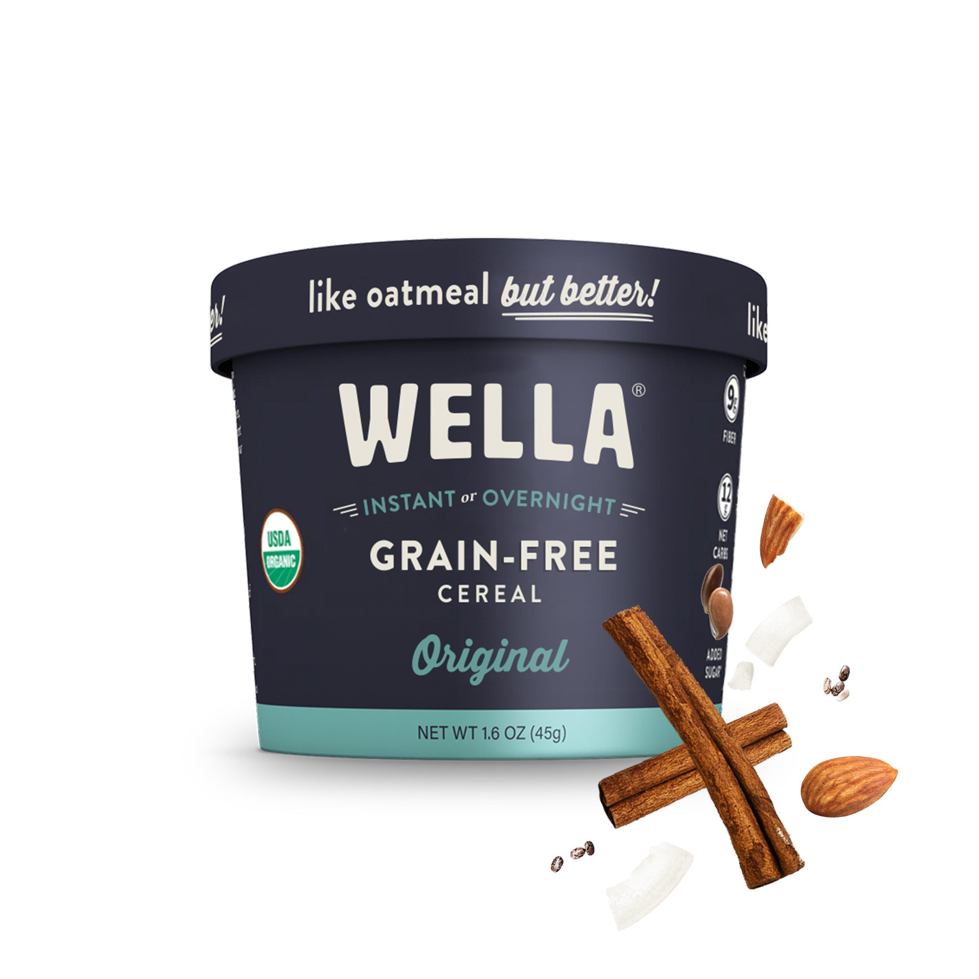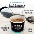 - 3x the Fiber of Oatmeal and About 2x the Protein. Love grain free hot cereal, vegan oatmeal or anything in between? Wella’s NEW grain free organic breakfast cereal is for you! Supercharge your morning with whole foods and delicious flavors – day or night! This grain free superfood can be enjoyed as an instant organic cereal and oatmeal-like staple designed to fuel your body. It’s like oatmeal, but better!