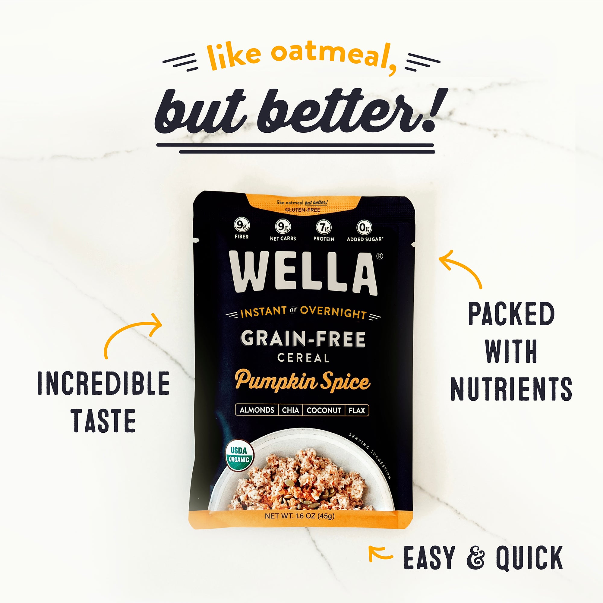 • 3x the Fiber of Oatmeal and About 2x the Protein. Love grain free hot cereal, vegan oatmeal or anything in between? Wella’s NEW grain free organic breakfast cereal is for you! Supercharge your morning with whole foods and delicious flavors – day or night! This grain free superfood can be enjoyed as an instant organic cereal and oatmeal-like staple designed to fuel your body. It’s like oatmeal, but better!