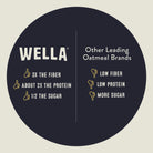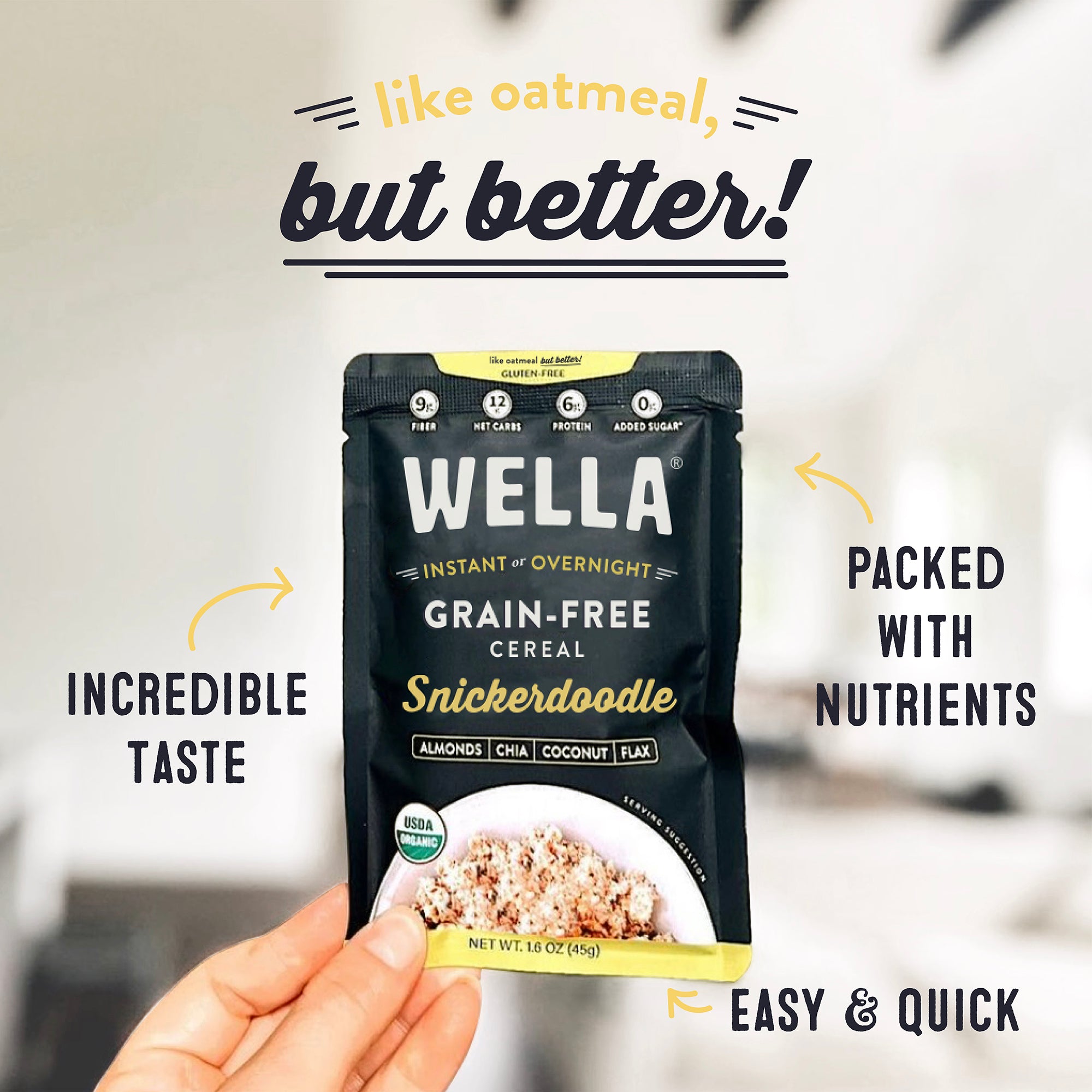 - 3x the Fiber of Oatmeal and About 2x the Protein. Love grain free hot cereal, vegan oatmeal or anything in between? Wella’s NEW grain free organic breakfast cereal is for you! Supercharge your morning with whole foods and delicious flavors – day or night! This grain free superfood can be enjoyed as an instant organic cereal and oatmeal-like staple designed to fuel your body. It’s like oatmeal, but better!