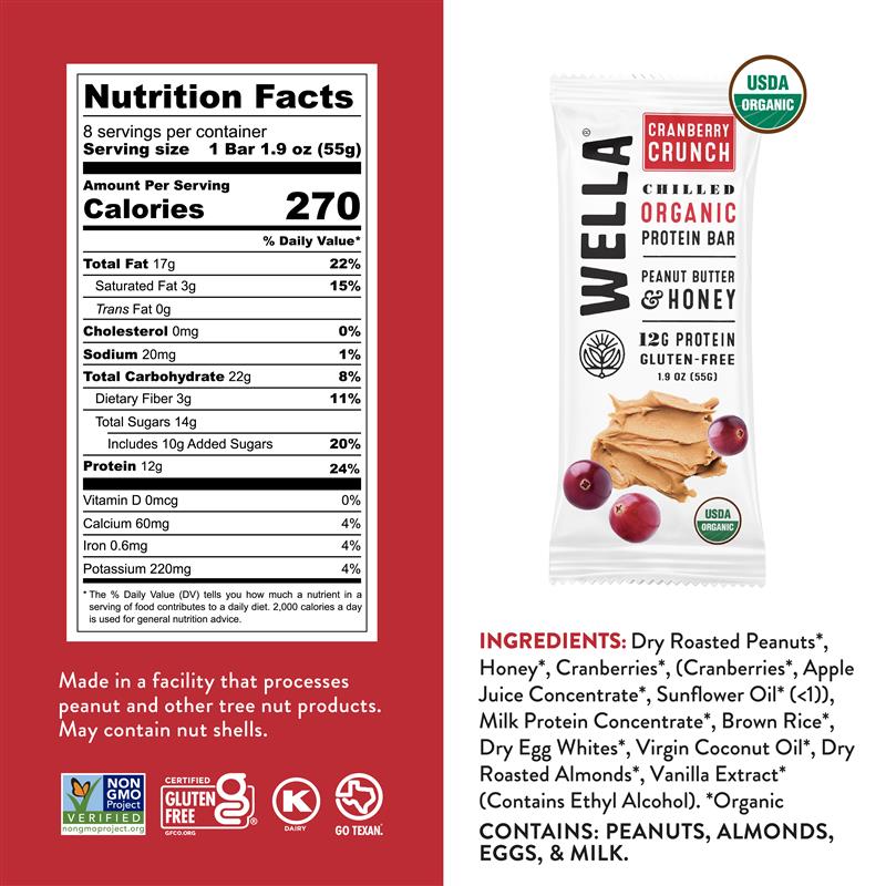 A creamy blend of house-made peanut butter enhanced and lightly sweetened with fragrant honey, and studded with tender dried cranberries and brown rice crisps makes our Cranberry Bar ‘The Berry Best’. Milk powder and egg whites add texture and boost the protein to create this intensely satisfying snack bar.