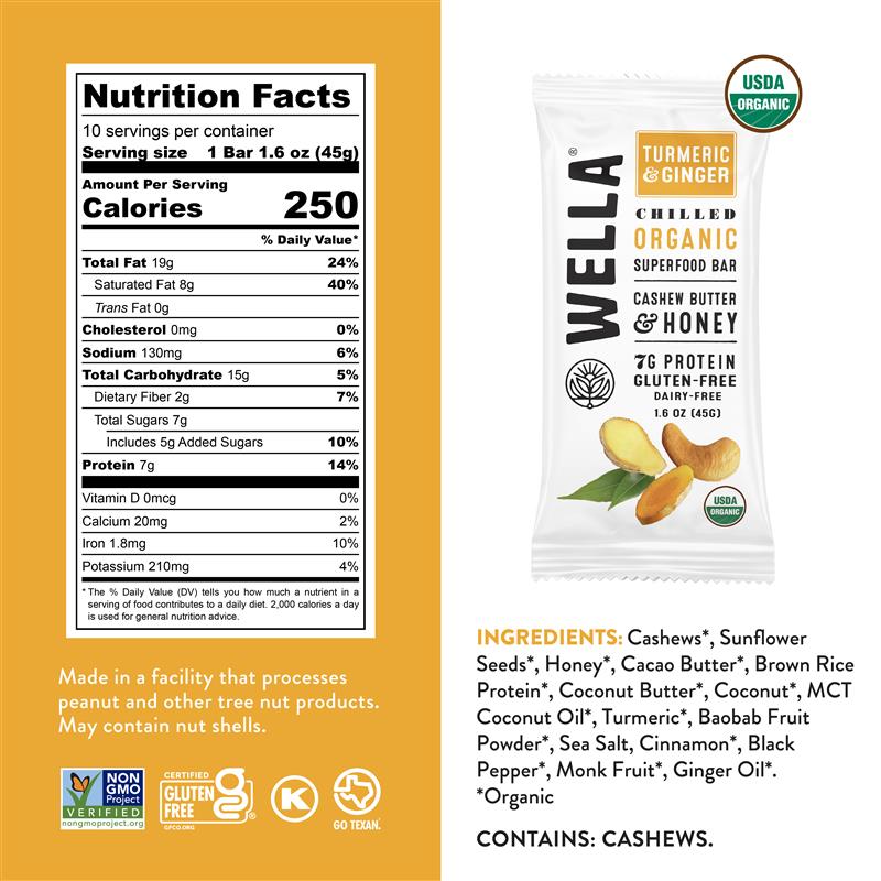 Our creamy blend of house-made cashew butter, lightly sweetened with honey and a touch of monk fruit provides the perfect base for this turmeric* ginger powerhouse. We add a pinch of black pepper to enhance turmeric absorption, with brown rice protein to boost the staying power of this plant-based superfood snack.