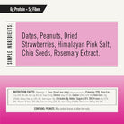 Everyone has that memory... peanut butter and jelly sandwich, the bread stuck to the roof of your mouth that you weirdly loved. This bar is like that but with only superfood ingredients. Strawberries, peanut butter, Himalayan pink salt and chia seeds. Your tastebuds will be delighted and your body will be fueled. All while being transported back to your 5 year old self. The major bonus? Kiddos will house this bar down and not blink an eye! “Bye-bye”, morning snack battles!